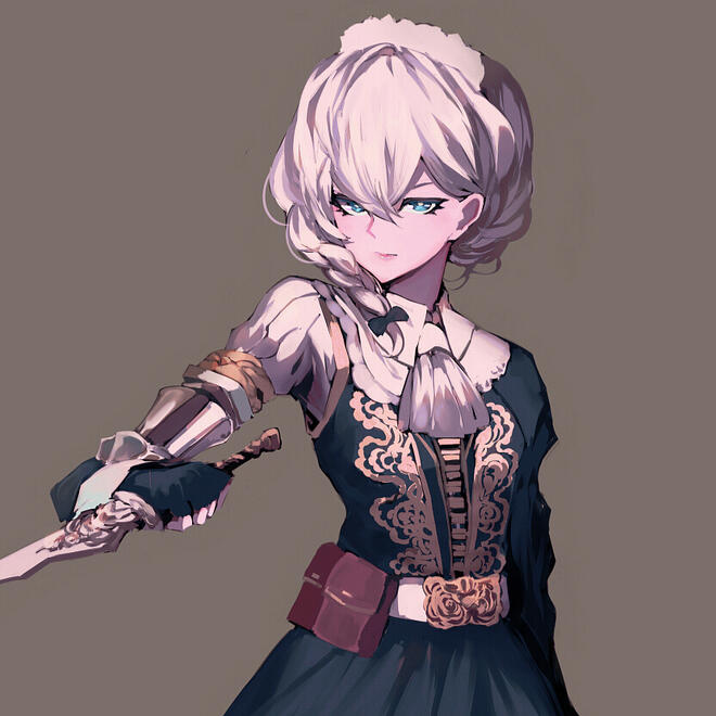 Shio is an average tall woman, she has a slender body to help her dual job. Blue eyes and white hair (eventhough somethime looks gray), sometime her long hair are brided.